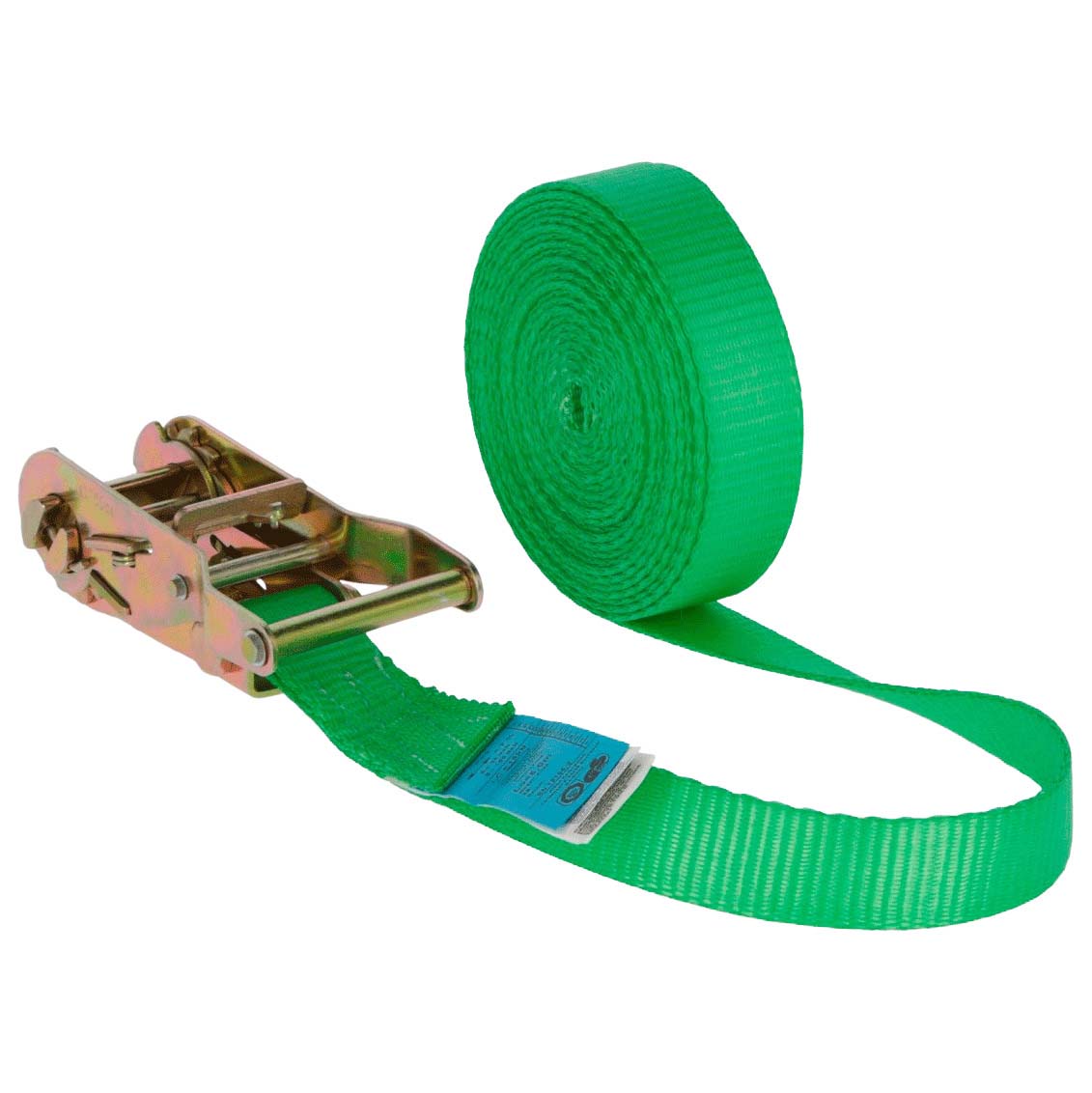 Der Ratschenzurrgurt besteht aus strapazierfähigem Polyestergewebe und ist für den besseren UV-Schutz PU-imprägniert. Der Zurrgurt ist GS geprüft und besitzt eine zulässige Zugkraft von 1.500 kg. Die Ratsche ist galvanisiert. Die maximale Dehnung des Ratschenzurrgurtes sollte 7 % nicht überschreiten.