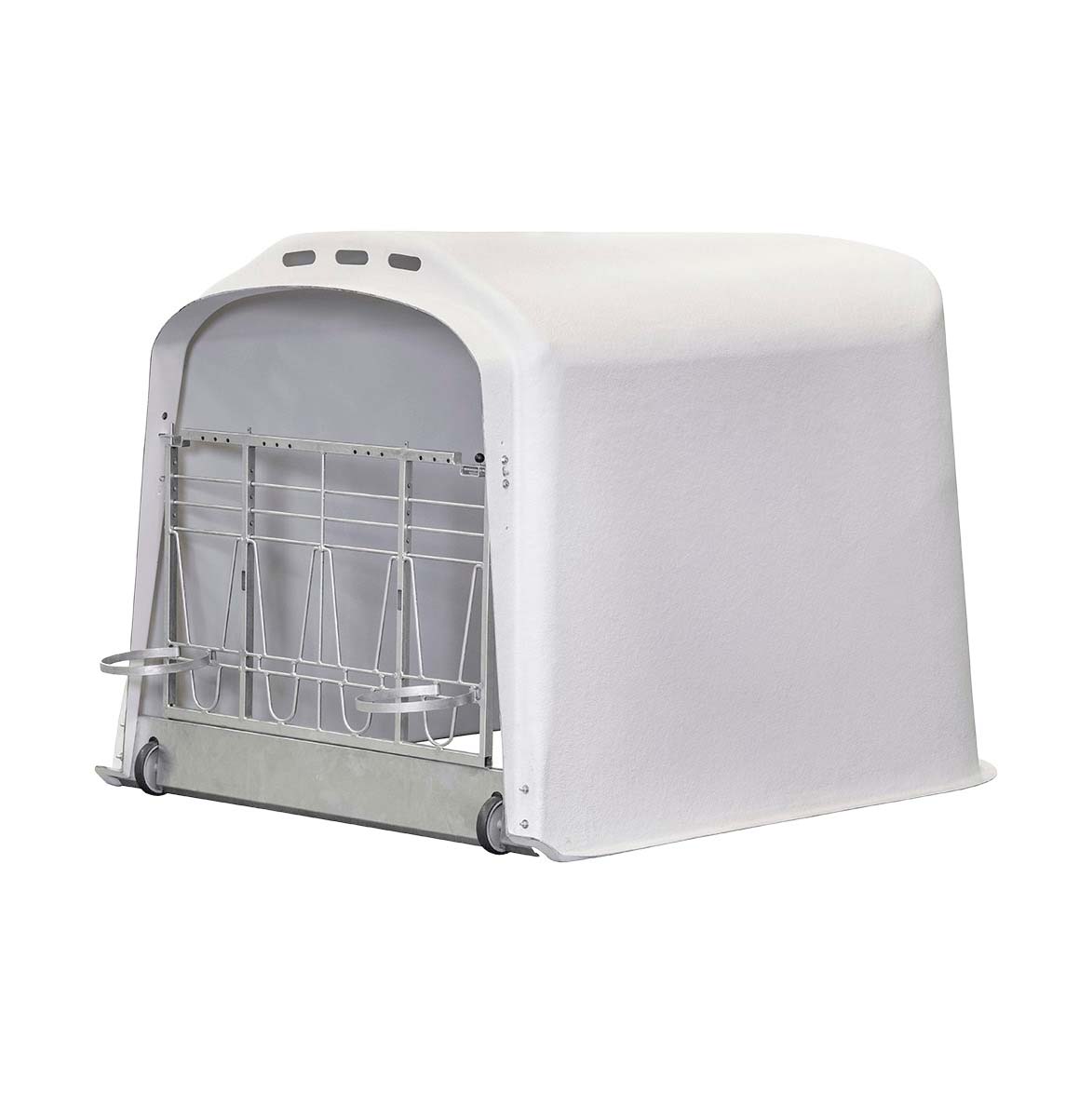 Iglu für zwei Kälber mit Sperrgitter und Eimerringhalter