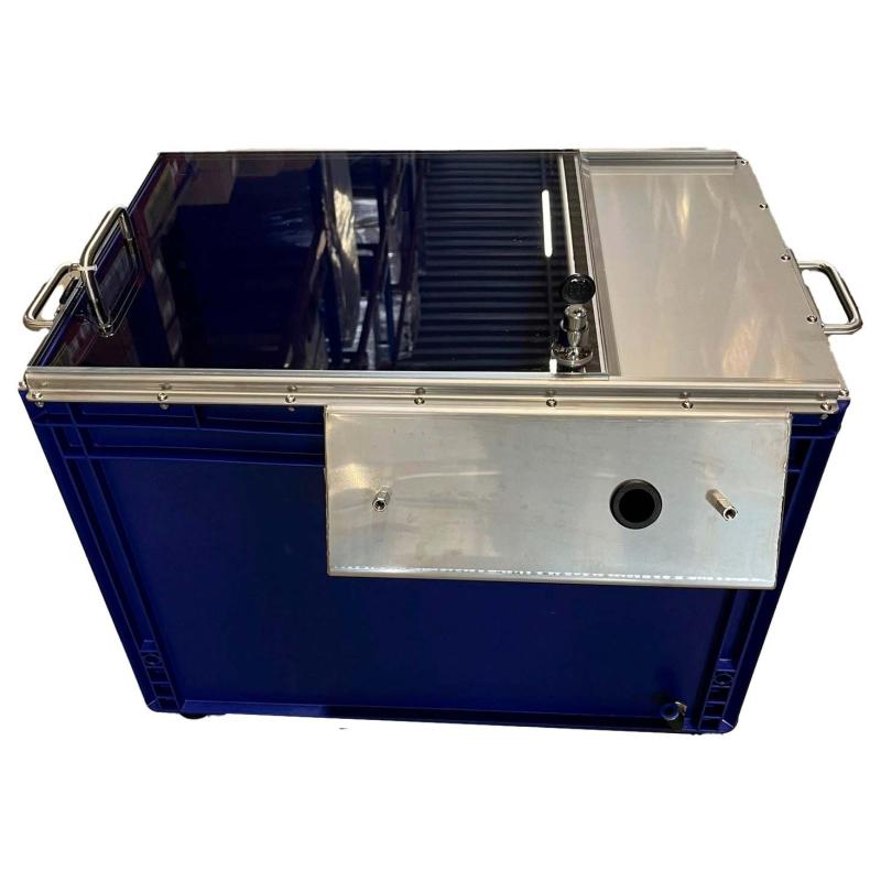 Die CO²-Box lässt sich an der Oberseite über einen transparenten Schiebedeckel öffnen. Der Deckel ist mit einem Vorhängeschloss abschließbar, so dass die Box sicher aufbewahrt werden kann.